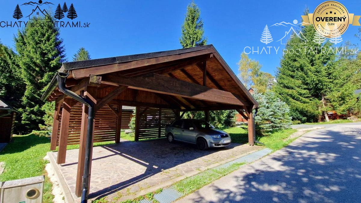 Na upravenom pozemku pri chate je prístrešok na parkovanie pre autá a pri chate je praktický sklad na lyže a ostatné veci potrebné pre každého chatára.