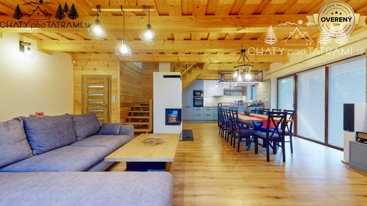 Veľkoryso riešená spoločenská miestnosť – Priestranná a svetlá spoločenská miestnosť je srdcom chaletu a je ideálna na rodinné stretnutia a relax.