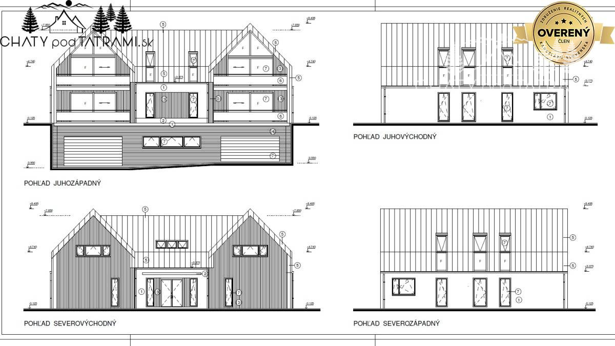 Na pozemok je spracovaný stavebný projekt na trojpodlažnú budovu. Sú tu naplánované štyri trojizbové byty a garáž pre štyri autá.
