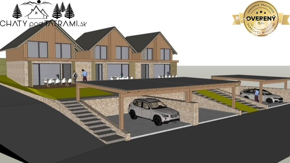 Chata má vlastný pozemok na ktorom bude prístrešok pre autá. Ku stavbe vedie spevnená, v zime udržiavaná cesta.