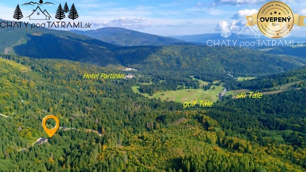 Chata sa nachádza v prekrásnej scenérii Nízkotatranského národného parku lemovanej vrchmi Dereše, Chopok, Ďumbier a širokým pásom lúk zvaným tiež Tále. Je situovaná v lese na pokojnom mieste, na mierne svahovitom slnečnom pozemku, ako posledná stavba v chatovej osade.