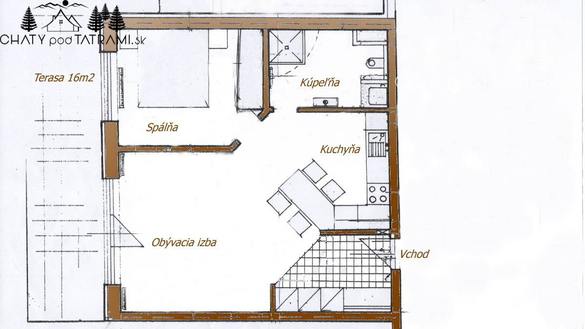 Apartmán sa nachádza v zateplenom murovanom dome kolaudovanom v roku 2009, na treťom poschodí z piatich, s výťahom. Je orientovaný na juhovýchod a má výmeru 51 m², plus terasa s výmerou 16 m², ktorá sa tiahne pozdĺž celého bytu. K apartmánu prislúcha aj pivnica (lyžiareň) na prízemí bytového domu o výmere 2,6 m², vybavená sušičom na lyžiarky.